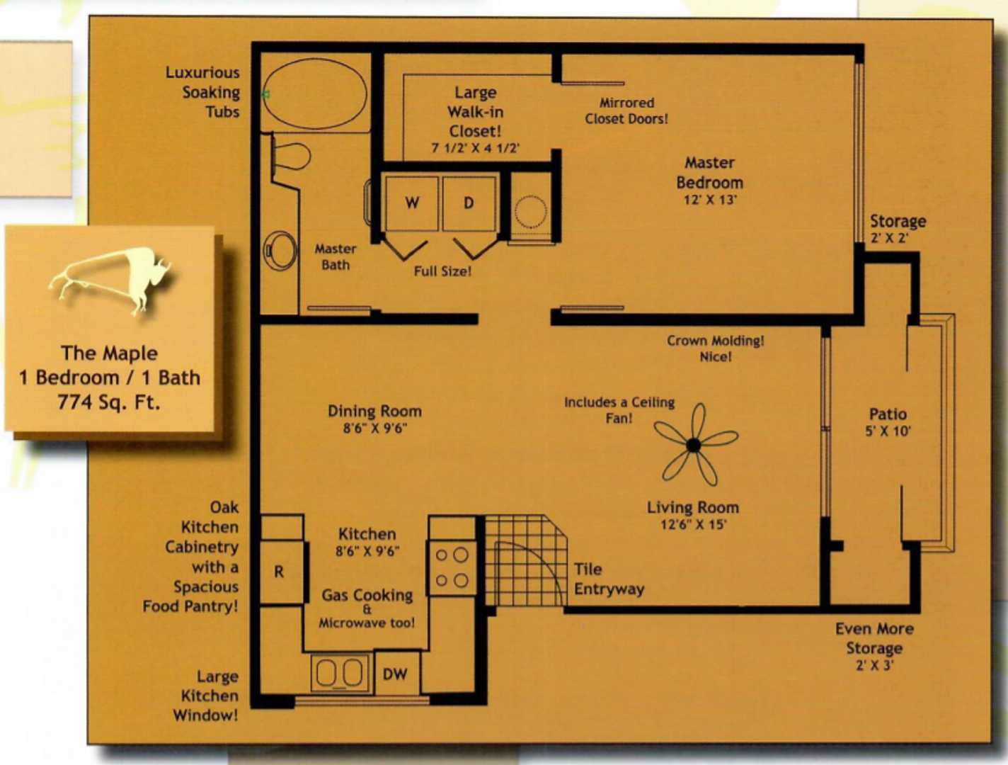 Offering 774 square feet of comfort waiting for you to make it your own. Featuring all appliances including a gas stove, microwave, and a full-size washer and dryer in unit!
